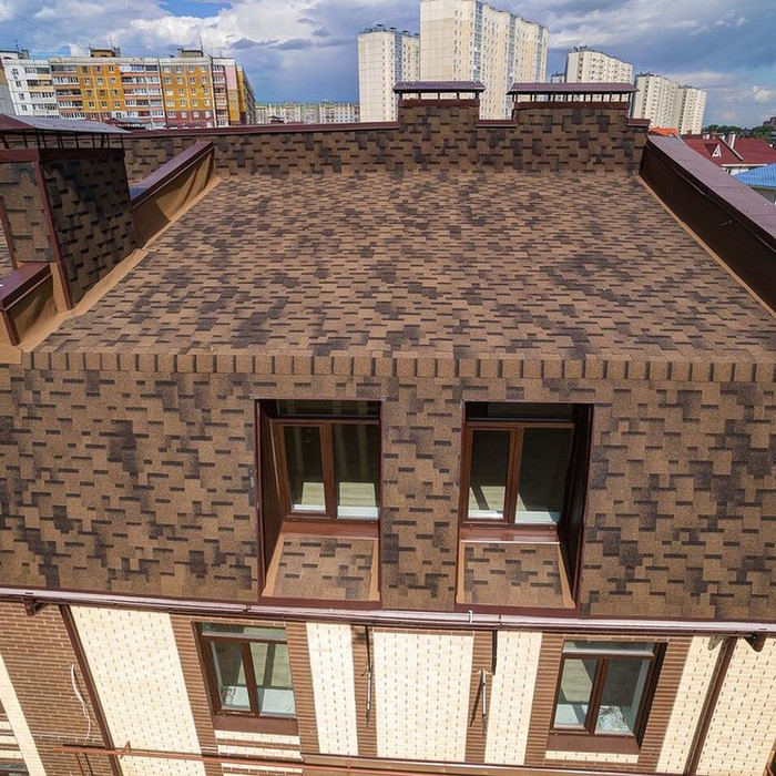 Гибкая черепица устойчива к температурным изменениям, механическим повреждениям. Гибкая черепица подходит для крыш различных форм и размеров. Она идеально подходит для домов с нестандартными формами крыши, так как гибкая черепица легко гнется и принимает нужную форму. Также она подходит для многоугольных и купольных крыш.