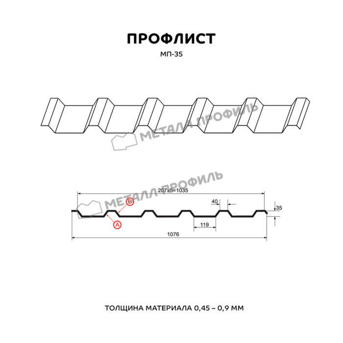Профлист Металл-Профиль МП-35 NormanMP 0.5 мм RAL 1014 Слоновая кость