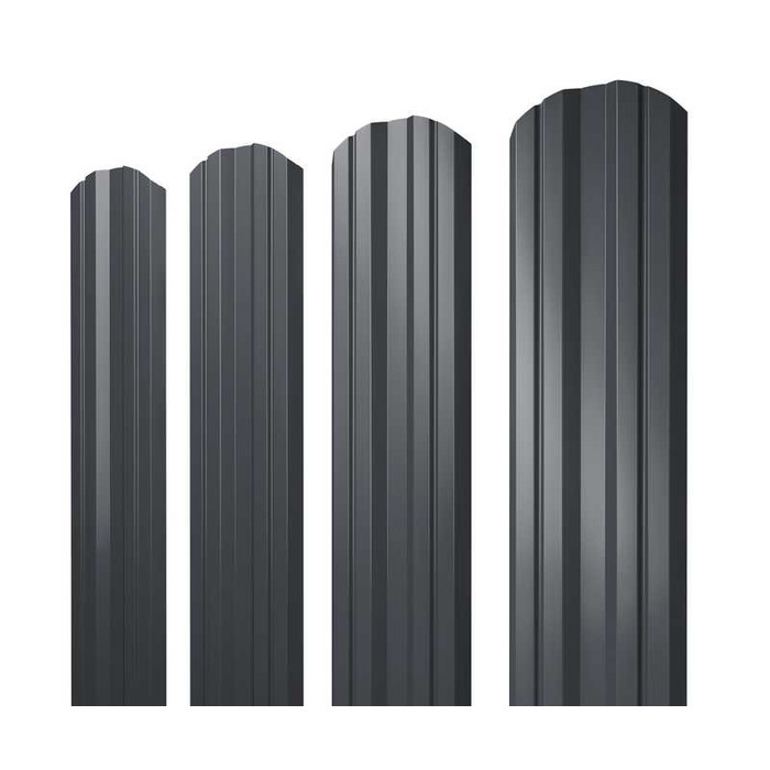 Штакетник Полукруглый Slim Grand Line 0,4 Полиэстер матовый - double RAL 7024 Мокрый Асфальт